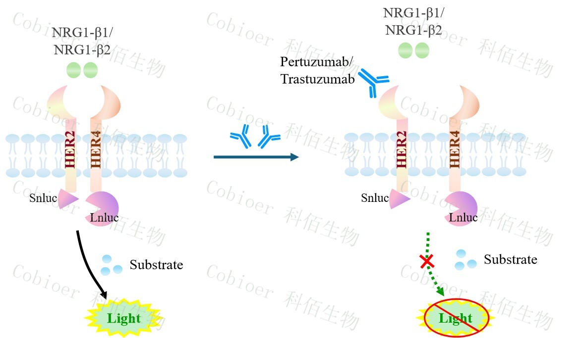 ERBB2&ERBB4 Dimerization CHO 報告基因藥靶模型很好的模擬了體 內(nèi) ERBB2&ERBB4 的信號轉(zhuǎn)導(dǎo)過程,原理見圖所示。![]() Figure 1. ERBB2&ERBB4 Dimerization CHO 細胞模型原理圖 |