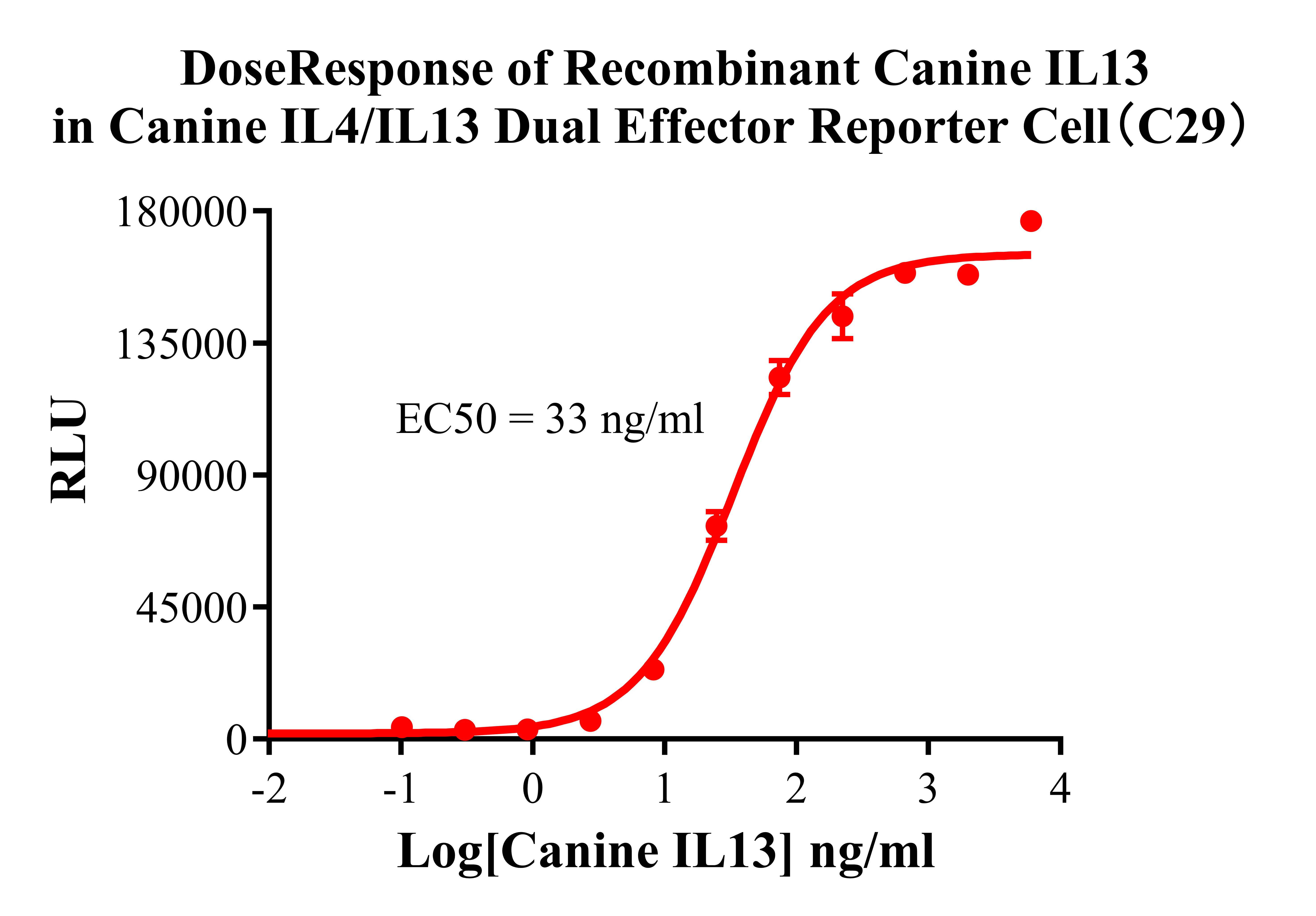 ![]() Figure 2. Dose Response of Recombinant Canine IL4 in Canine IL4/IL13 Dual Effector Reporter Cell(C29).