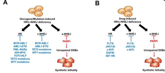 “合成致死”是指兩個(gè)非致死基因同時(shí)被抑制,導(dǎo)致細(xì)胞死亡的現(xiàn)象。當(dāng)兩個(gè)基因同時(shí)失活導(dǎo)致細(xì)胞死亡,但任一基因中的單獨(dú)失活都是無明顯毒性。在發(fā)生突變失活的腫瘤中,通過抑制其合成致死配對基因,可獲得腫瘤選擇性殺死。