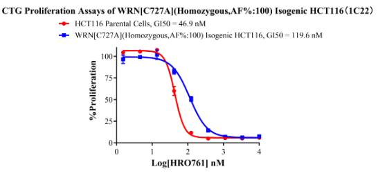 Figure 8. CTG Proliferation Assays of WRN[C727A](Homozygous,AF%:100) Isogenic HCT116(1C22).